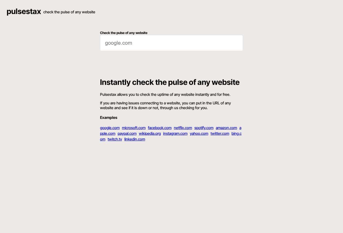 Pulsestax | Check the uptime and pulse of any website
